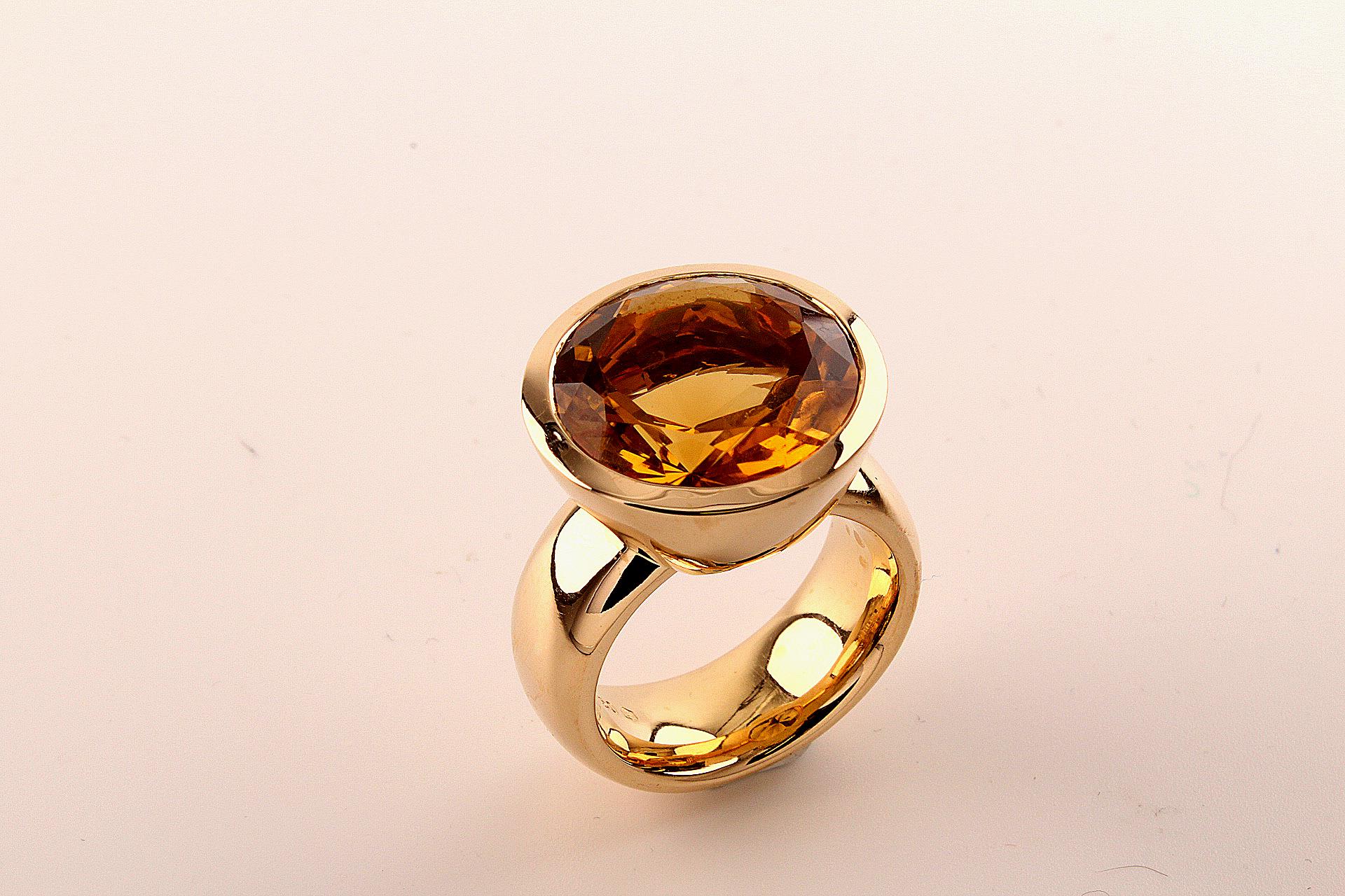 Aus 26gr 750er Gold gefertiger massiver Citrinring.