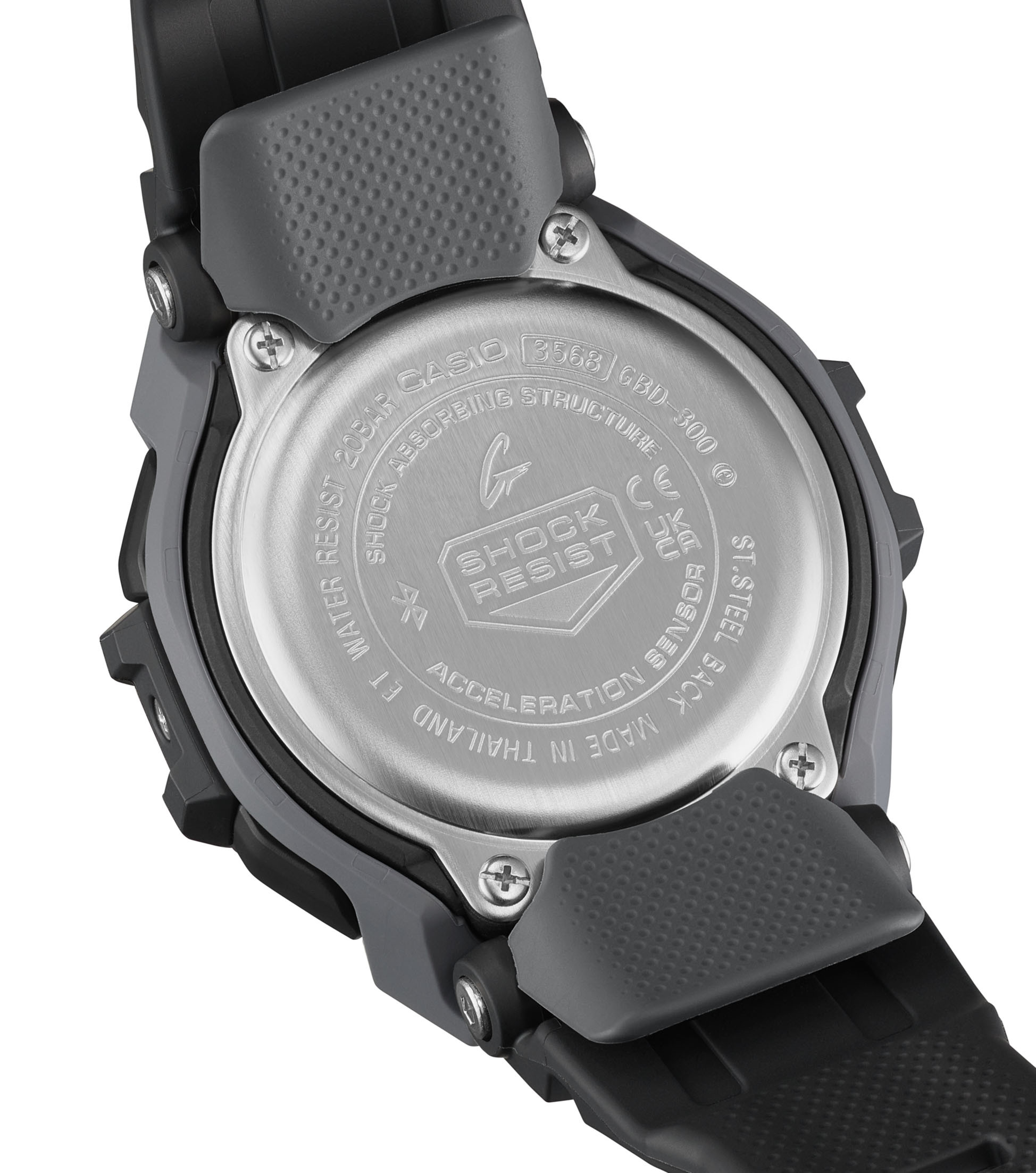 Das Armband der GBD-300-1ER besteht aus weichem Urethan und bietet dank der in 5-mm-Abständen angeordneten Bandlöcher eine passgenaue Einstellung für unterschiedlich große Handgelenke. Die flexible Beschichtung aus feinem Resin an der Unterseite sorgt für angenehmen Tragekomfort bei allen Armbewegungen. Zudem bestehen die wichtigsten Harzkomponenten aus biobasiertem Resin, was die Umwelt schont.