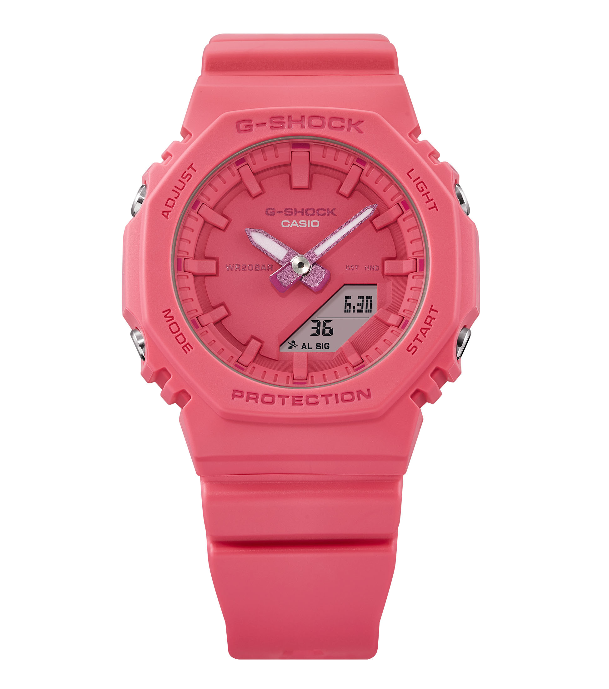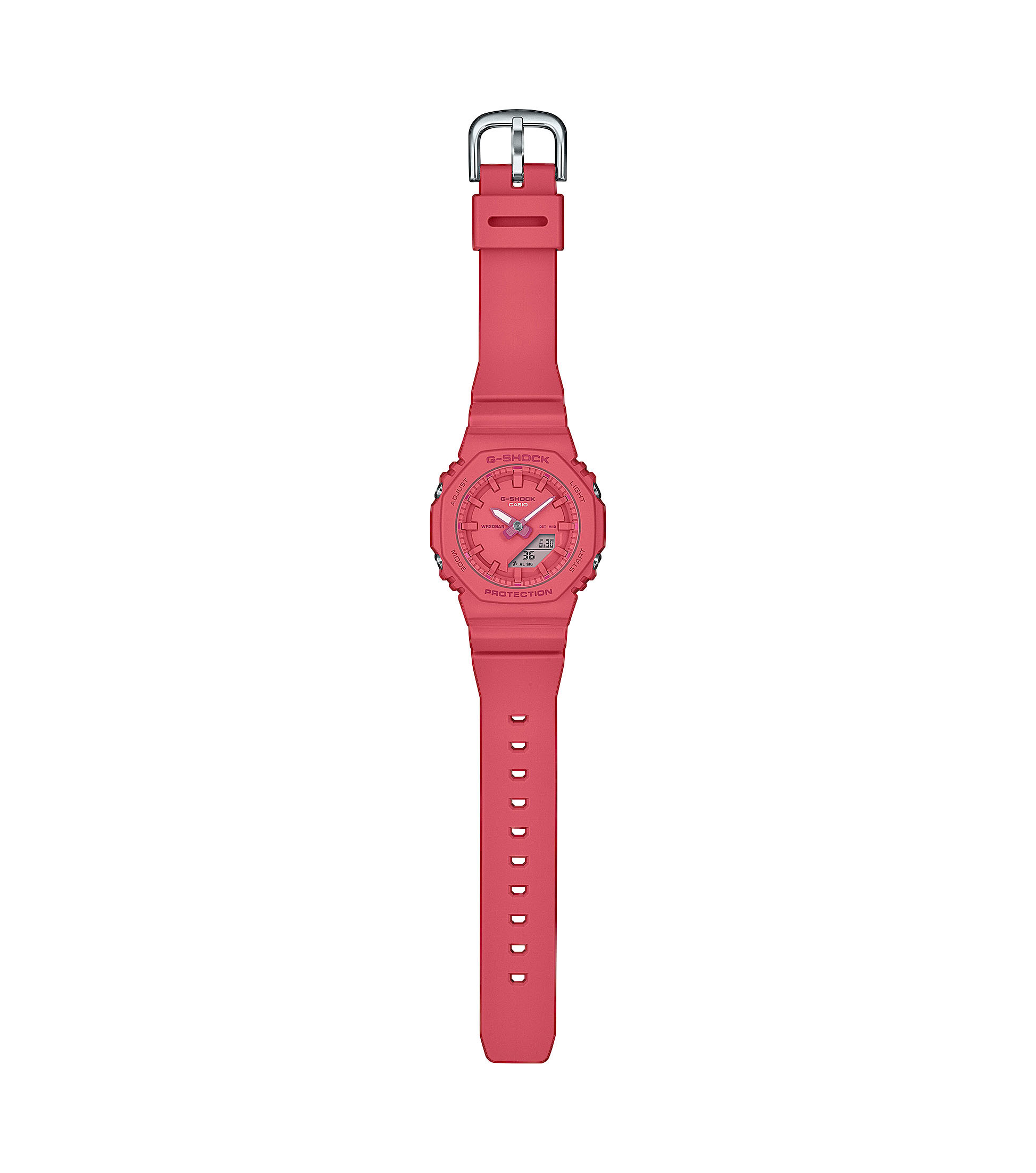 Entdecke den begehrten digital-analogen G-SHOCK Look mit der GMA-P2100-4AER. Diese kleine G-Shock Uhr bietet ein schlankes und kompaktes Design, perfekt für kleinere Handgelenke.