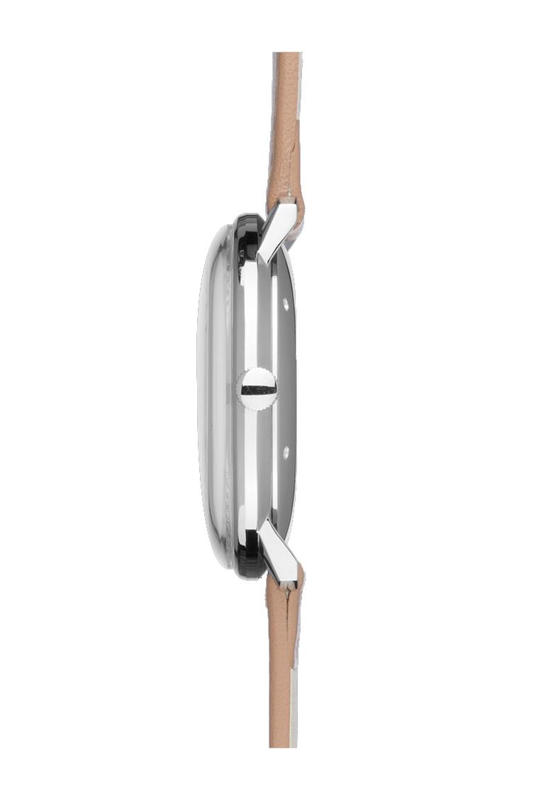 Zifferblatt: Versilbert matt, Leuchtpunkte aus umweltfreundlicher Leuchtmasse, Zeiger mit umweltfreundlicher Leuchtmasse